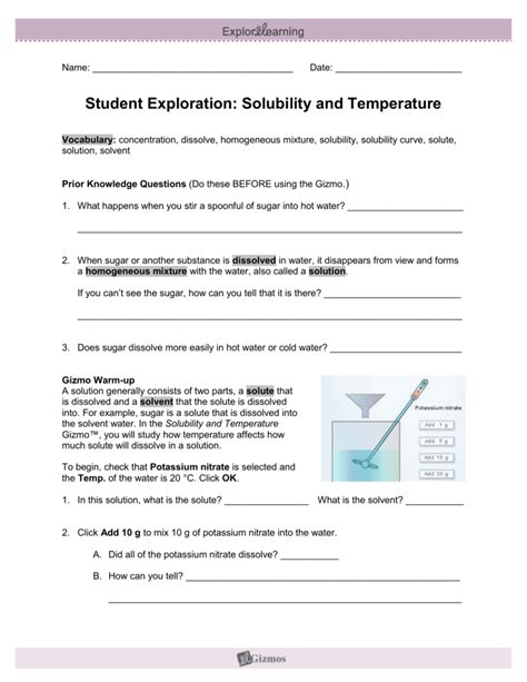 Read Online Student Exploration Solubility And Temperature Answer Key Library Binding